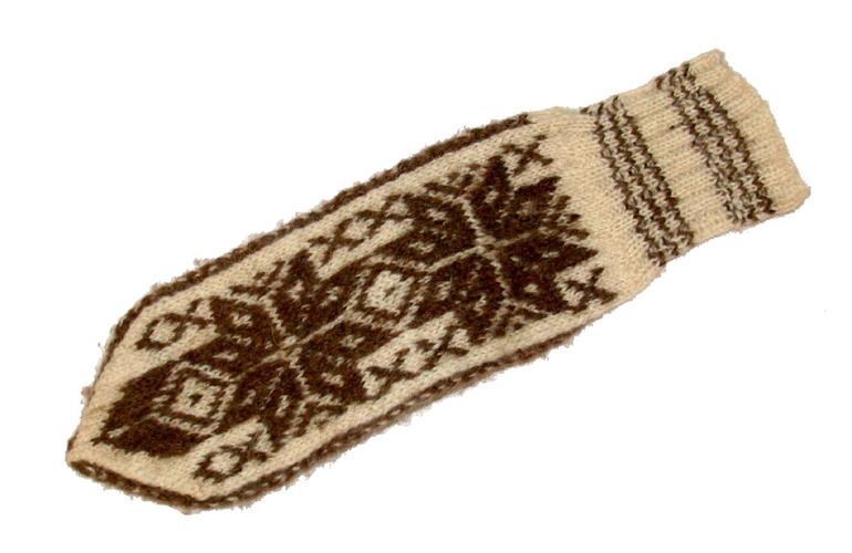 í sauðalitunum. Hann er útprjónaður með rósamunstri.