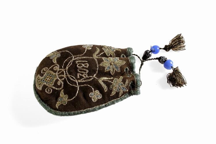 Peningapyngja Valgerðar Jónsdóttur, biskupsfrúar í Skálholti (f. 1771, d. 1856). Pyngjan er úr brúnleitu skinni, með útsaumuðum blómum í gylltum, grænum og bláum litum. Á annarri hlið eru útsaumaðir upphafsstafir Valgerðar, VJ, og á hinni hliðinni ártalið 1802, hvoru tveggja með gylltum þræði. Pyngjan er rykkt saman að ofanverðu með grænu og svörtu bandi og í því hanga fjórar glerperlur, tvær bláar og tvær svartar og hvítar. Pyngjan er fallegur og góður gripur.