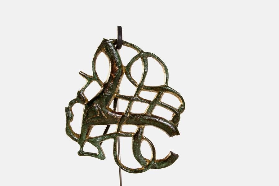 og virðist vera með annað smádýr líkt (ungi). Nælan er allmikið skemd,
