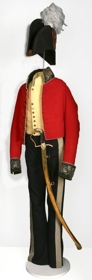 Vestir úr gulu klæði en bak og fóður úr hvítu hörlérefti, hnappar gylltir með enskri áletrun. Frá einkennisbúningi amtmanns, konunglegs embættismanns, á fyrri hluta 19. aldar.