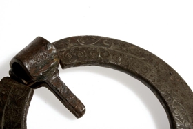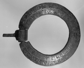 Kirkjuhurðarhringur frá Hofi í Vopnafirði á norð-austurlandi, líklegast frá um 1200, sömu gerðar og hringurinn í útskornu hurðinni frá Valþjófsstað, sem sýnd er hér í safninu.