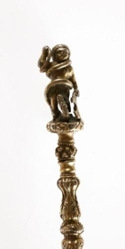 útgrafinn gengr á blaðið að neðan. Aptan á skaptinu stendr líkneski af