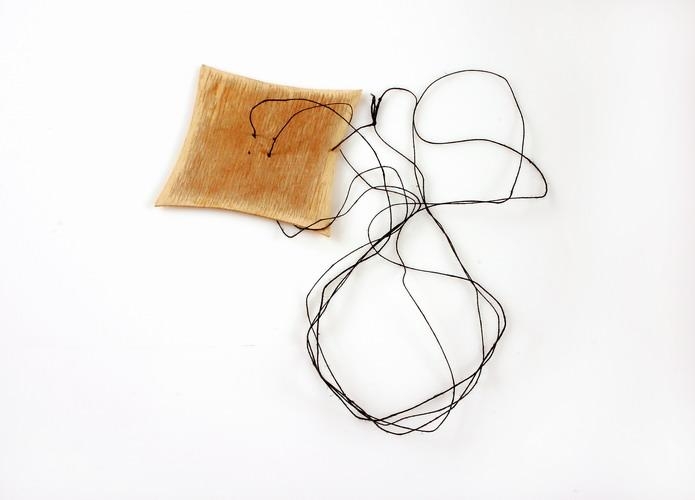 viði með tveimur götum og dreginn í einn og sami spotti, hnýttur saman.