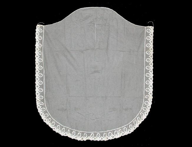 fylgir kyrtli nr. Þjms. 2007-27-1. Með brúnum blæjunnar er saumuð 7 cm