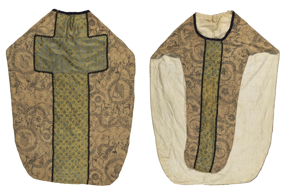 Sigurbjörg Jónsdóttir frá Hoffelli í Nesjum fól til geymslu og ánafnar Þjóðminjasafninu eftir sinn dag eftirtalda gripi úr kirkjunni, sem var að Hoffelli til 1894 (kirkja þessi stendur enn og notuð sem geymsluhús): a. Hökull. Saumaður úr ljósu lérefti og með silkibúnaði. Tunga að framan og aftan, og framhluti styttri og mun mjórri. Sídd hökulsins í bak um 1 m 11.5 sm, hálsmál um 30 sm á vídd, sídd að framan um 85 sm, en br. öll um 83 sm. Léreftið brúngult og með svörtu, þrykktu skrauti, undnar greinar og blómsveigar, englar og karl og kona í búningi frá barokktíma í kumpásum. Á bakstykki kross úr gulu og bláu silki og hér blómskraut, stofn nær frá háslmáli og niður úr, l. þverálmu 49 sm, br. um 24 sm, en á brjóstið saumaður barði, sömu gerðar og kross, eftir miðju og enda á milli, br. um 11.6 sm. Hálsmál bryddað með bláum og svörtum silkiborða, 1.4 sm á br. með brúnum á krossi og borðanum að framan er svörtu snúra og utan við hana festi úr litlum, svörtum perlum, smáir hlykkir á. Hvítt léreftsfóður. Hökull þessi er lítið eitt slitinn. Í vísitasíubók biskups frá 1706, 23. sept., mun átti við hann. Segir þar: attar af þricktu kartune (?), með blömuðum silke krosse og rauðu liereps föðre sæmilegur. Sbr. Þjms. 426, 4500, o.fl.