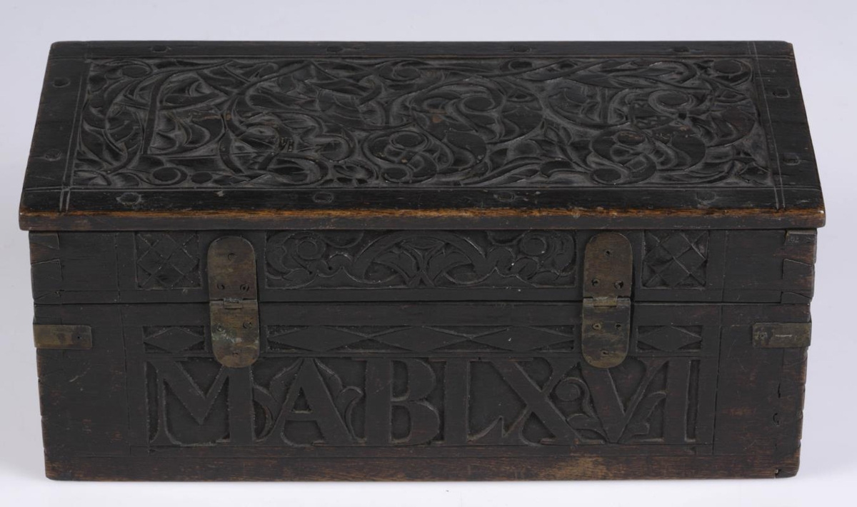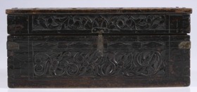tákna 1866. Á báðum hliðum loksins og á göflum er blaðaskraut. - Kistillinn