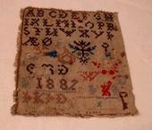 1882. Óvíst hver saumaði þennan klút. Í klútinn eru saumaðir bókstafir
