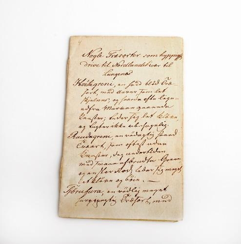 náttúrufræðings og skálds, d. 1845, skrifað á dönsku um helstu trjátegundir,