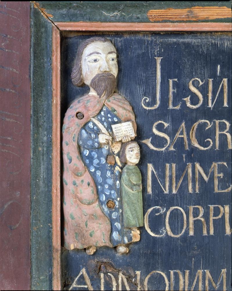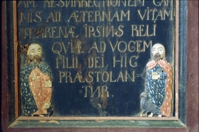 kennistákn sín. Taflan er líklega eftir Hallgrím Jónsson smið og málara á Kjarna í Eyjafirði og víðar, d. 1785.