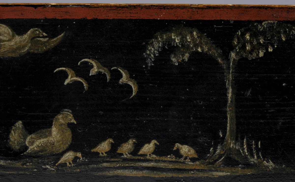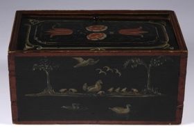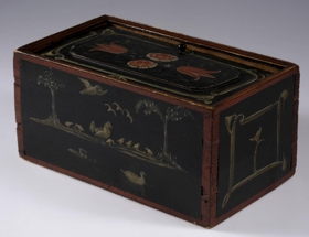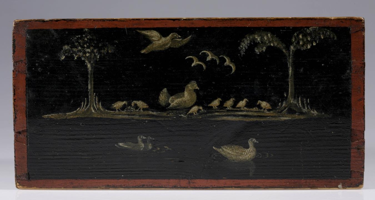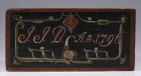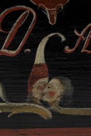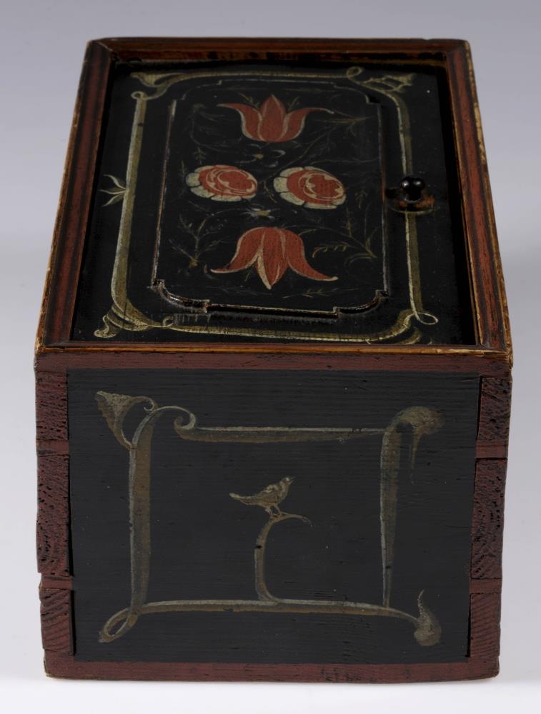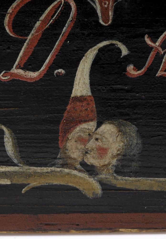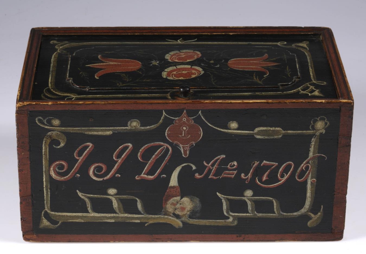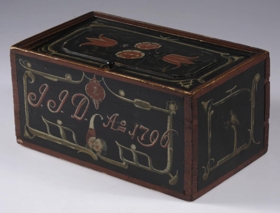 Málaður kistill eftir Jón Hallgrímsson í Kasthvammi. Á framhliðinni er máluð mynd af konu og karli sem kyssast (einungis höfuð þeirra sjást) og er konan búin krókfaldi en karlinn er berhöfðaður. Á framhliðina eru auk þess málaðir stafirnir I I D sem eru upphafsstafir konunnar sem fyrst hefur átt kistilinn (I... J...dóttir) en óþekkt er hver hún var. Á framhliðina er ennfremur málað Ao 1796. Á hliðum kistilsins eru myndir af fuglum og trjám og á lokinu myndir af blómum. Grunnur kistilsins er málaður svartur, en í myndir eru notaðir ýmsir litir, mest rauður og hvítur litur / ljósir litir. Virkilega fallegur og skemmtilegur gripur. Safnið keypti kistilinn af Sigríði Björnsdóttur frá Miklabæ. Móðir Sigríðar hafði keypt kistilinn á uppboði eftir gamla konu á Víðivöllum.