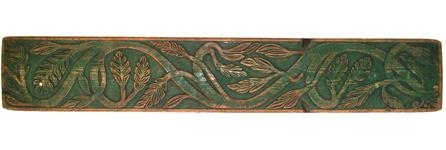 Rúmfjöl úr furu, máluð græn á framhlið,
