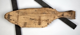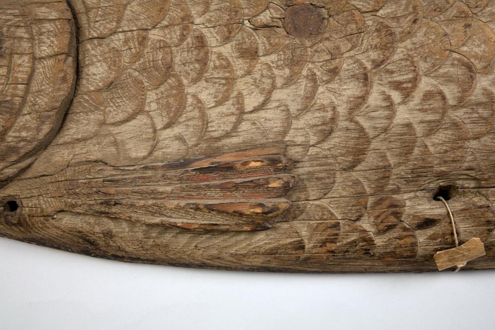Lax, skorinn úr tré, 1 álnar og 15 þumlúnga lángur. Sumir kalla hann guðlax. Hann hefir verið einkar haglega skorinn, og er mælt, að það hafi gjört Eiríkur nokkur í Holti á Síðu. Lax þessi var þversum yfir sömu kirkjudyrum og ljónin (nr. 66), og sýnir hvorttveggja skraut á byggingum fyrri alda, enda einnig mikinn hagleik manna á þeim tímum.