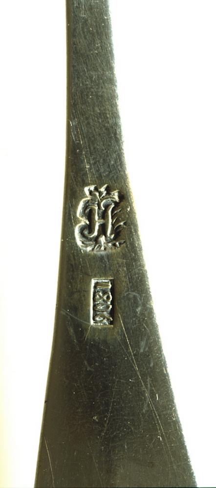 Skeiðin er smíðuð af Helga Þórðarsyni silfur- og gullsmið á Brandsstöðum í Blöndudal (f. 1761, d. 1828). Á bakhlið skaftsins er smiðsstimpill hans ásamt ártalsstimplinum 1806 (Freyja Hlíðkvist Ómarsdóttir, nóvember 2012).