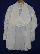 með stífuðu skyrtubrjósti og stífuðu kjólvesti sem haft er utan yfir skyrtuna.