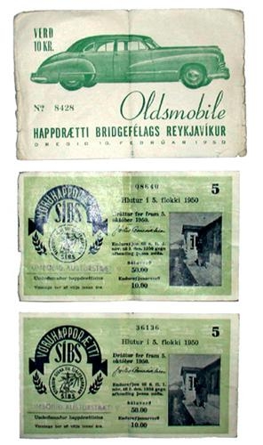 - Happdrættismiði frá HAPPDRÆTTI BRIDGEFÉLAGS REYKJAVÍKUR, frá árinu 1950, hvítur og grænn að lit.
