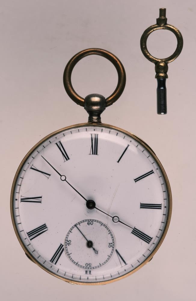 Gullúr, með venjulegri nýrri tíma gerð: kassinn úr 18 kar. gulli, með gleri að framan og 2 lokum að aptan, hið ytra eitt úr gulli: hið innra úr látúni, en silfrað, og grafið á : Balancier Coupé - Aiquilles. N: 1693 - Ancre - Treize Rubis. - Gengur vel. - Þverm. 4,8, þ. 1,3. Tilheyrði sjera Stefáni Thorarensen á Kálfatjörn og að sögn þar áður föður hans.