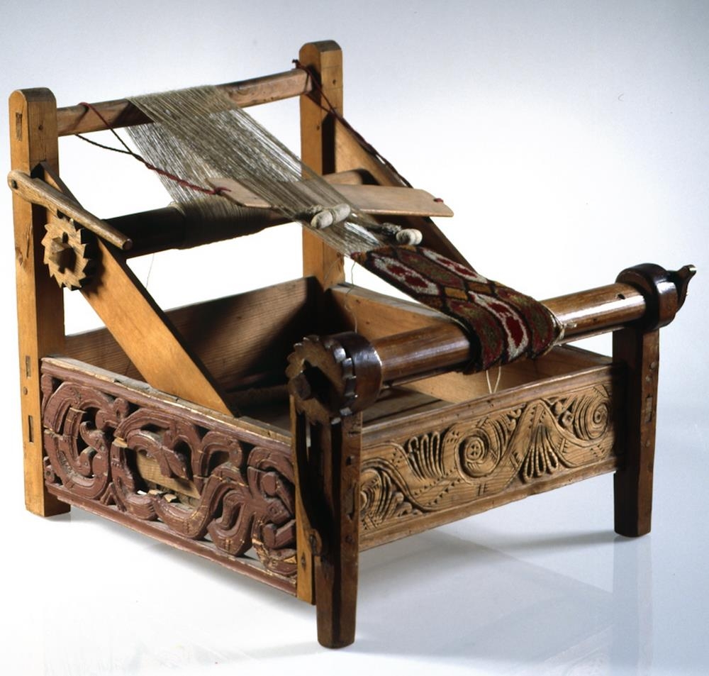 Flosvefstóll til að flosa á hempuborða til skrauts. Frá 18. öld.