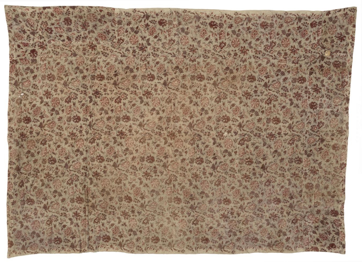 Búðartjald frá alþingi á Þingvelli við Öxará, það er 2 3/4 al á leingd. enn 2 al. á breidd: Þetta er tjald um þvera búð til afdeilingar, og sem átt hefur Ólafur Stephensen stiptamtmaðr [f. 1731, d. 1812]: það er hið einasta tjald að því ég veit sem til er notað sem hefir verið á alþingi hinu forna meðan það stóð*, sem búðartjald, þetta er einungis annar partur tjaldsins, hinn er glataður. Tjaldið er með hvítum grunni með smádröfnum en allt sett með röndum og dökkrauðum blómstrum og blöðum, en með svo föstum lit (ekta), að það lætr aldrei litinn, hversu opt sem það hefur verið þvegið, þetta er gróft hörlerept og var kallað hollenst lérept, rósirnar eru þrykktar í, annað orð hefi ég ekki yfir það er vel skilst. Þess skal getið, að tjald þetta getr verið miklu eldra, en frá tíð Ólafs stiptamtmanns, því það er víða dregið og sumstaðar bætt af sama efni, til aðhalds því við, enn að öðru leiti er það heilt og vel um gengið.