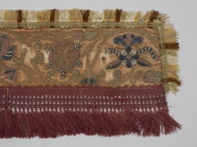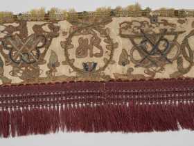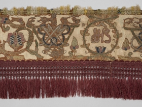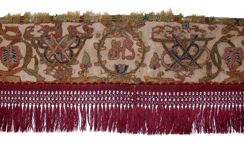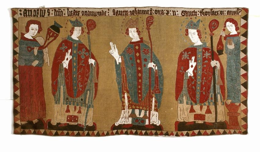 2. Refilsaumað klæði úr Hóladómkirkju með hinum þremur íslensku helgu biskupum, Guðmundi góða og Jóni Ögmundarsyni á Hólum og Þorláki Þórhallssyni í Skálholti. Talið íslenskt verk frá öðrum fjórðungi 16. aldar.