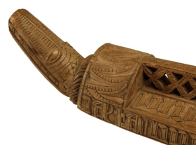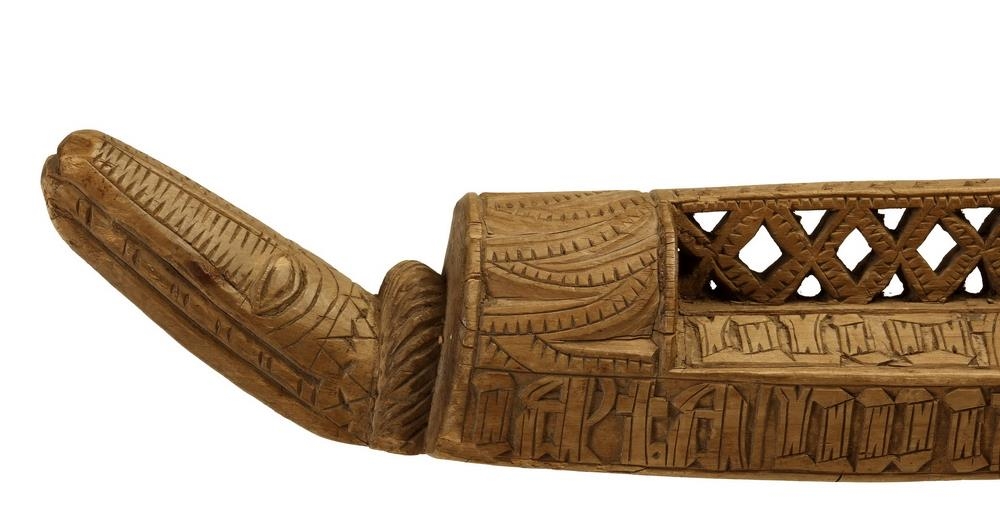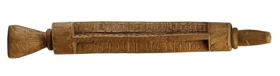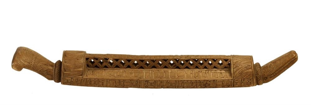 Trafakefli, yfikeflið, smíðað úr birki, 68,7 cm. að lengd 7,5-8,6 cm. að breidd og 7,2 cm. að hæð, alt útskorið: að aptan er útskorið handfang, l. 11,8 cm., og fram úr fremri enda er útskorin ormstrjóna. fyrir innan þau eru hálfsívalir kaflar, 5,7 cm. að lengd, og fyrir innnan þá er eptir miðju keflinu 3 cm. hár kambur með gagnskornu verki og neðanvið hann skáfletir út til hliðarflatanna, á þá fleti fjóra er skorinn með höfðaletri þessi vísuhelmingur dróttkvæður: hliote / ne / hrund / aa / 1) g // iæta / hvitust / þaa / glede / nita b // ot / aa / þui / mest / er / mote / mætust / folld / linna / stræta. Virðist kunna að vera frá 17. öld. 1) Svo.