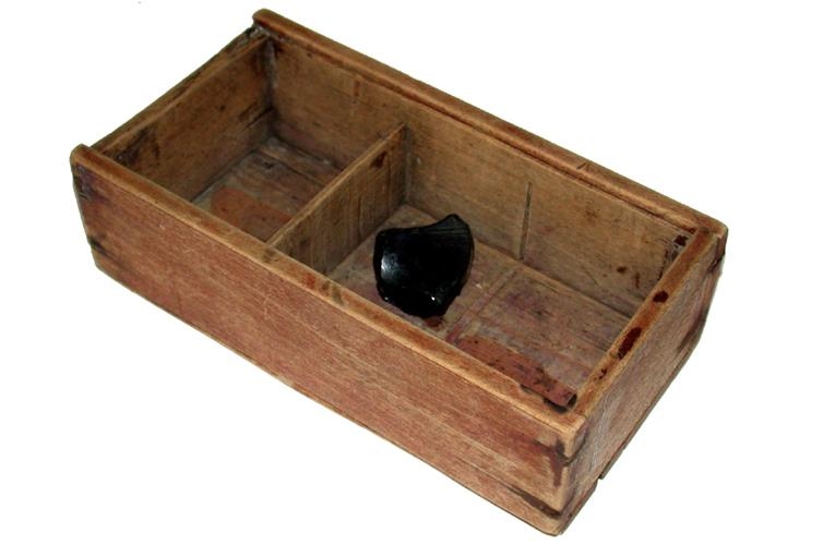 glötuð. Í stokknum er hrafntinnumoli.