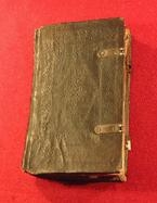 tveimur koparspennum sem hafa verið notaðar til að spenna bókina aftur