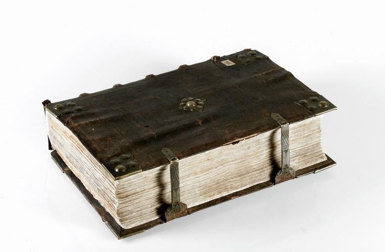 Guðbrandsbiblía, Hólum 1584, gott eintak og bundið í alskinn með miklu, pressuðu verki, skrautlegu, látúnsbúið; er þetta frumlegt band, litlu yngra en biblían. Neðst á titilblaðið er ritað: ,,Þesse Biblia er mier til Eignar feinginn af min[e]/ Eruverdugre hiarttans modur Chrijstinu G[udb=]/ randsdottur, til að jdka og lesa vmm mijnar [lijfs]/ stunder. Enn eij j Burtt að fä anno J63. Thorläkur Ara son m[e.h.]." Er þetta vitanlega Þorlákur sonur þeirra Ara sýslumanns Magnússonar í Ögri og konu hans Kristínar dóttur Guðbrands byskups Þorlákssonar, sem útlagði og útgaf þessa biblíu. Þetta eintak tilheyrði síðan kirkjunni á Staðarfelli, 1) en móðir gefandans, frú Hildur, kona Bjarna sýslumanns Magnússonar og dóttir Bjarna amtmanns Thorarensen, var kirkjueigandi þar og eftirljet syni sínum bókina, en hann safninu. Eintak þetta er hið prýðilegasta. Annars skal hjer ekki rætt frekar um þetta ágæta verk; það yrði of langt mál í þessu sambandi.