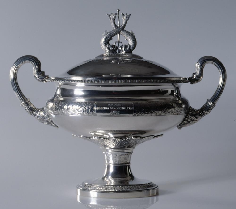 Tarínan er vissulega hinn fallegasti dýrgripur og stærsti silfurgripur í Þjóðminjasafninu. Hún er í laginu nánast sem ker með nýklassísku sniði, en þó er stílblöndunar farið að gæta. Hún er með tveimur eyrum, stendur á fæti og á lokinu efst eru tveir höfrungar, sem snúa sporðum upp og er þríforkur á milli, dæmigert fyrir danska list þess tíma.