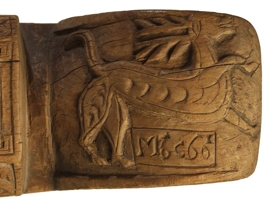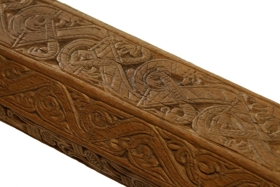 Trafakefli með hjartarmynd, rósum og knútum. Þar á er ritað með latínuletri: EIOLFVR THORSTEINZ(son). MDC61.