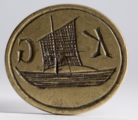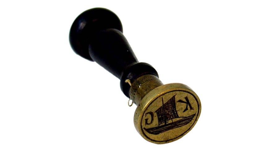 og upphafsstafirnir K G eru krotaðir sinn hvorum megin við seglið.