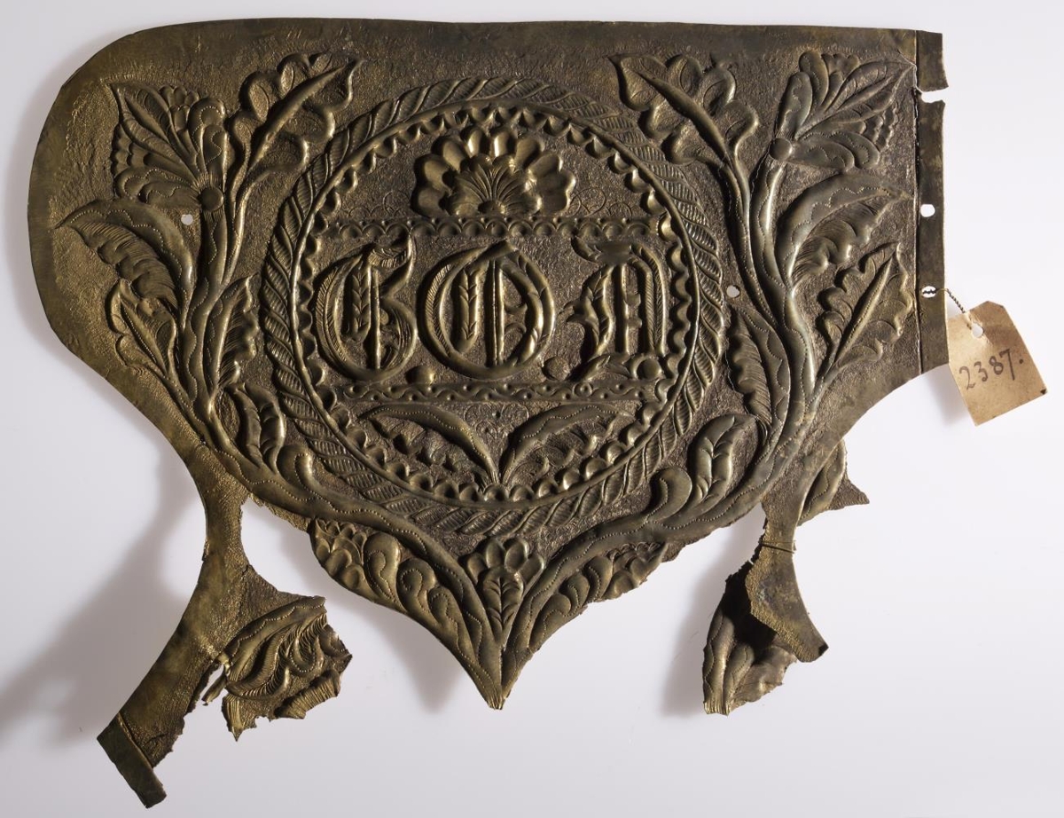 Látúnsþynna drifin, aptanaf söðulboga.