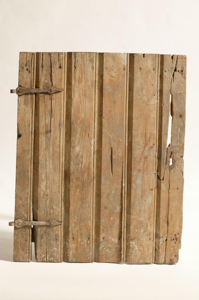 Smiðjuhurð, efri helmingur af tvískiptri hurð. Smiðjuhurðir voru sums staðar tvískiptar og efri helmingurinn hafður opinn til að hleypa reykjarkófi út en neðri hlutinn lokaður svo að börn færu sér þar ekki að voða. Hurðin er alsett brennimörkum, sem smíðuð voru í smiðjunni, enda var algengt að smiðir prófuðu brennimörk sín á smiðjuhurð og dyrastöfum. Brennimörkin eru frá lokum 19. og fyrri hluta 20. aldar.