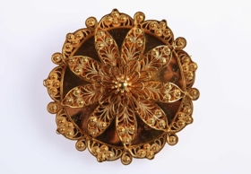 Slifsisnæla. Nælan er kringlótt plata skreytt víravirkisblómi með 9 laufum. Nælunni er lokað með nál sem smeygt er undir krók. Aftan á nælunni er stimpill GÞ og ártalið 1930. Nælan var höfð á peysufataslifsi til skrauts.