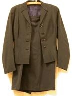 Flugfreyjubúningur þ.e. jakki, pils og hattur, dökkblátt að lit. Jakkinn er aðskorinn í mörgum stykkjum og hnepptur með fjórum tölum. Sídd hans er 55 cm, fóðraður með bláu fóðri. Vasar neðst á hliðum. Pilsið er hálfsítt og þröngt. Sídd 70 cm. Hattur eða bátur er allur stangaður með merki Flugfélags Íslands saumað á stykki sem er utan á hægri hlið. Framan á hatti er hattprjónn með ljósum haus. Einkennisbúningur gefanda frá því hún starfaði sem flugfreyja hjá Flugfélagi Íslands.