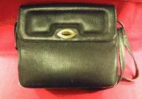 Hliðartaska tilheyrandi flugfreyjubúningi nr. 2000-18-7. Taskan er blá að lit og fóðrum með rauðu leðri. Nokkur hólf eru í töskunni. Lokið fellur yfir að framan og er því fest með snerli úr látúni. Taska gefanda frá því hún starfaði sem flugfreyja hjá Flugfélagi Íslands.