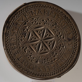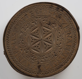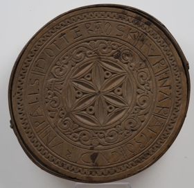 fyrir utan er skorið með latínuletri: Guðrún Pálsdóttir á Öskjurnar, A.1730,