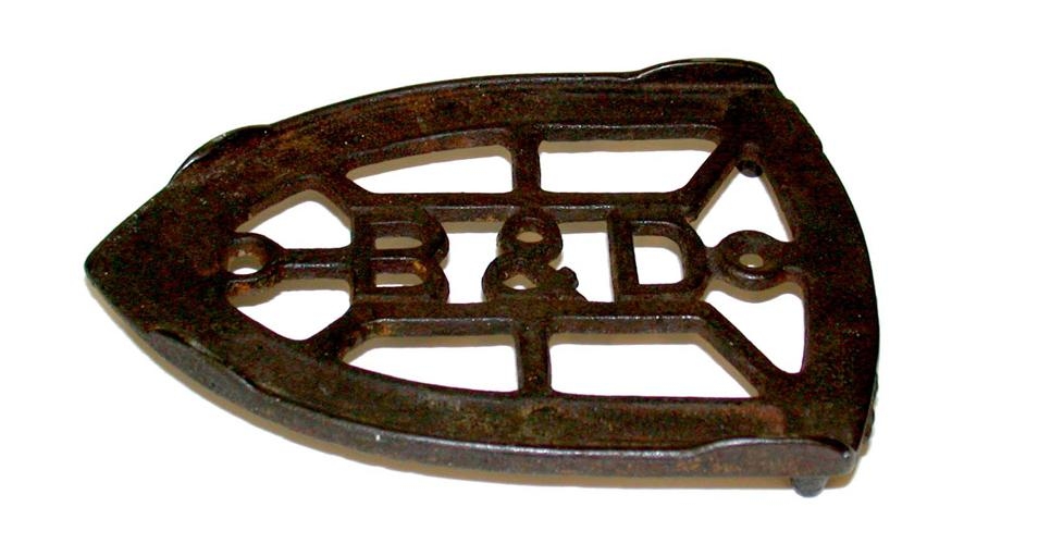 Á því eru stafirnir B & D. Statífið kom ásamt rafmagnsstraujárni
