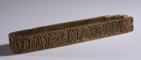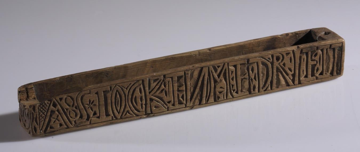 Prjónastokkur, eintrjáningur úr furu. Lok vantar nú á og nokkuð af öðrum gaflinum. L. 28,3, br. 3,4-3,6,h.3,7-3,9. Á hliðar er skorin áletrun með latínuletri, upphafsstöfum: HERDIS GISLA DOTTER - A:STOCKENMEDRIEIT (u). Á endana eru skorin blóm, með skipaskurði. Mun vera frá fyrri hluta síðustu aldar.