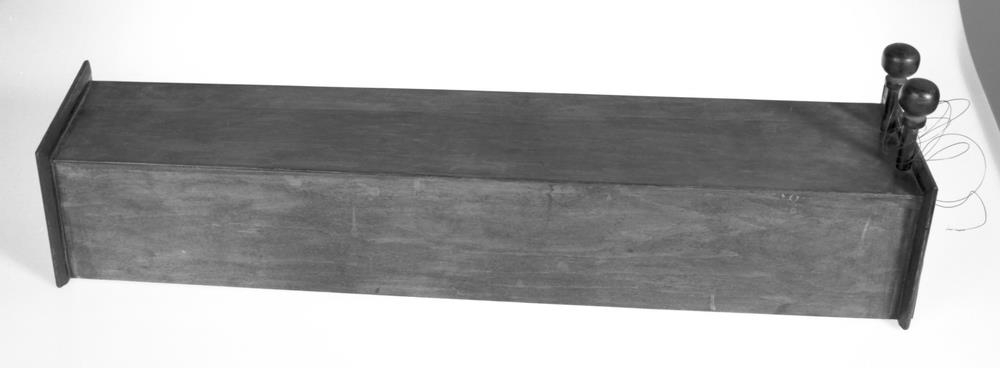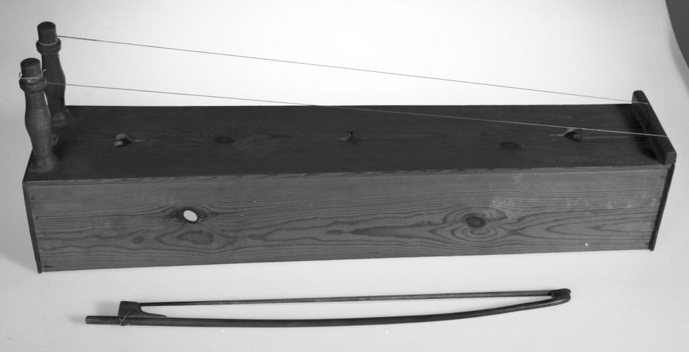 Íslenzk fiðla nýsmíðuð úr þunnum krossvið nema gaflarnir, sem virðast vera úr birki. Hún er að mestu leyti límd saman, en þó einnig styrkt með nöglum hér og hvar. Hún er sem aflangur stokkur að lögun, botnlaus en með föstu loki, 78,5 cm að l., 14,4-17 cm að br. og 13,5 cm að hæð. Umhverfis gafalana á 3 vegu eru bríkur úr mahogný, 1,6 cm að hæð. Við mjórri gaflinn eru festir 2 koparstrengir með 8 cm milliblili: liggja þeir yfir gaflbríkina, sem lyftir þeim frá kassanum, og enda í 2 tökkum við breiðara endann. Þeir eru renndir úr mahogný og standa upp úr kassanum: við þá eru strengirnir festir og strengdir. Öll er fiðlan bersýnilega smíðuð eftir lýsingum fiðlunnar nr. 8477, þeim, er birtar eru í ritgerðum, sem vitnað er til undir því tölumerki. Þorsteinn Konráðsson á Eyjólfsstöðum hefur smíðað og selt safninu. Er hún því mjög nýleg álitum, t.d. bæsuð og lökkuð. Sjá næsta nr.