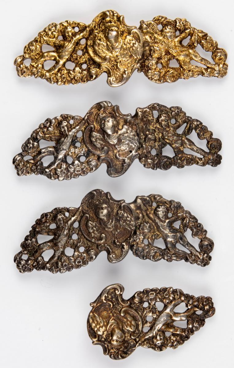Fjögur smápör, sögð vera hempupör. Eru þau úr silfri og með gyllingu. Öll sams konar, þ.e. tveir skildir, steyptir, með gegnskornu og upphleyptu skrauti. Á öðrum skildinum í pari hverju, þeim, sem stærri er, er krókur, en gat fyrir krók á hinum. Lengd hins stærra er nál. þrír og hálfur sm, br. mest um 2 sm, l. hins minna um 2.7 sm, en br. skjaldar þessa mest um 1.8 sm. Þegar pari er krækt, er öll lengdin um fimm og hálfur sm. Skrautið er í eins konar rokókóstíl og er einkennandi atriði af þeim toga, bugðuflaga, á innri enda hinna stærri skjalda í pörunum. Ekkert skraut er á bakhlið. Gylling er