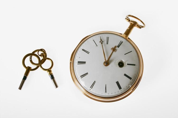 er stimplaður J H og er kóróna yfir. Lykilgatið er á skífunni, við II.