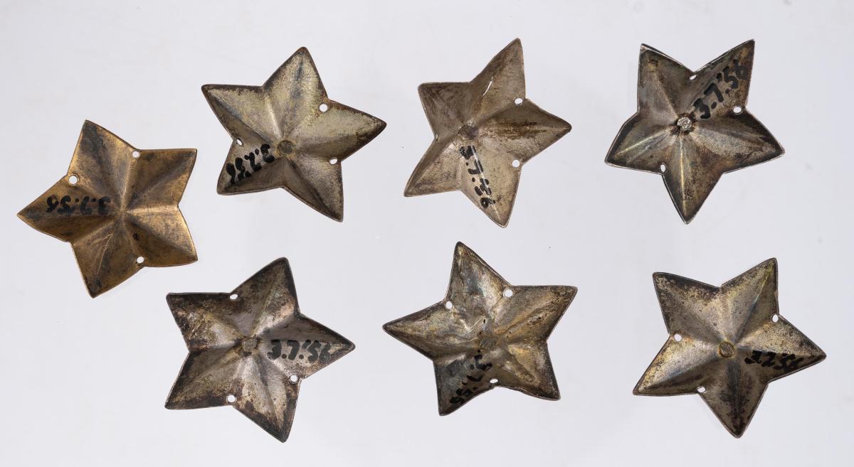 á, en hin sjöunda, með roða, er um hálfur sm á h. Þrjú smá göt milli armanna.
