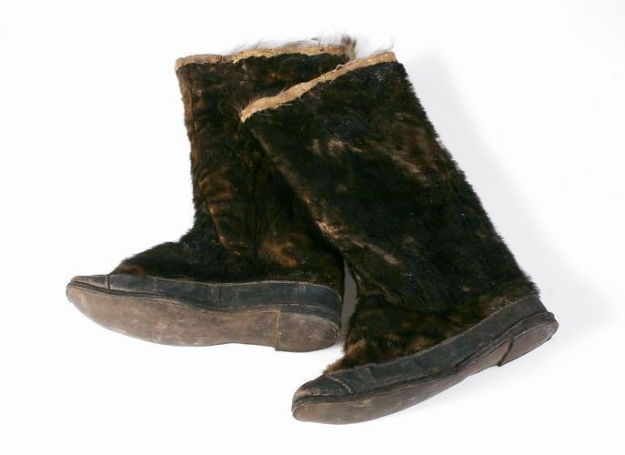stígvélið úr hundsskinni. Undir þeim eru venjulegir, harðir stígvélasólar,