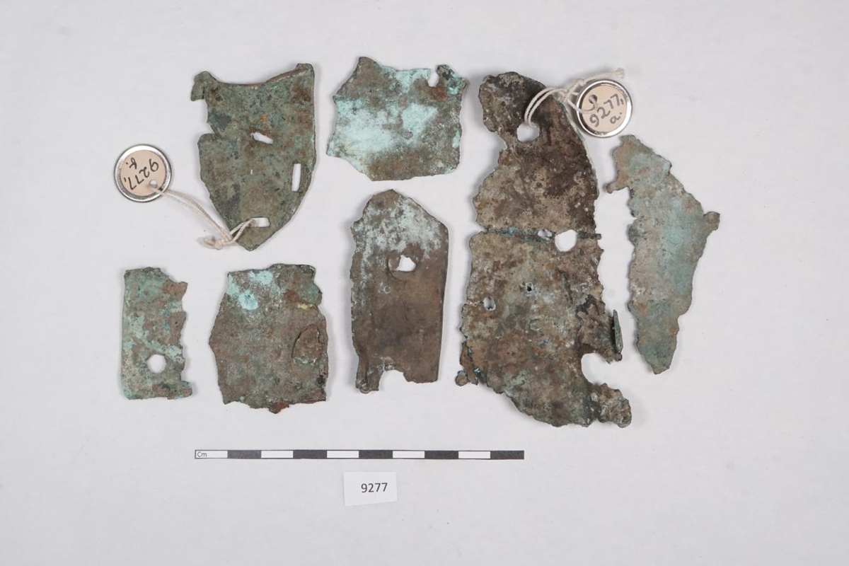líklega úr katli eða potti: fremur þykk, með nagla og naglagötum: óheilleg.