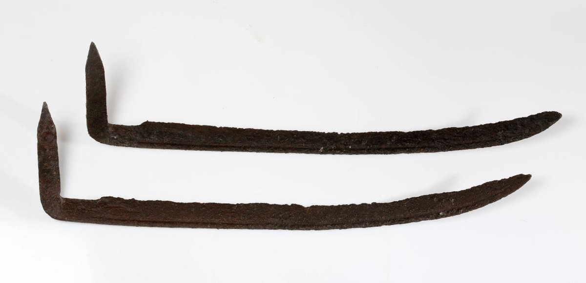 Ljáir 2 íslenzkir, einjárnungar (spíkur), mjög líkir að öllu leyti, en annar virðist eitthvað notaður og eyddur, t.d. í oddinn, en hinn lítið sem ekki. Þeir eru 48 og 49 cm langir mælt eftir bakkanum og ca 2,4 og 2,7 cm breiðir, bakkinn 5 mm þykkur, grashlaupið 3 cm langt, þjóið 9 cm langt og 2 cm breitt, en sneitt af endanum báðum megin eins og hvatt í eyra. Þjóið er 6 mm þykkt neðst, en þynnst upp eftir. Ljáirnir eru fallega sveigðir í oddinn og meðfram endilöngum bakkanum ofan á er drag til skrauts. Fljótt á litið minna þessir ljáir mikið á skozka ljái, enda þjó og bakki þeirra smíðaðir hér heima á líkan hátt og einjárnungarnir áður. Sennilega eru þessir ljáir ekki gamlir, jafnvel frá fryrri hluta 19. aldar. - Fundust á Kaldadal og mun þá líklega einhver Sunnlendingur, er var að fara í kaupavinnu norður, haf týnt þeim.