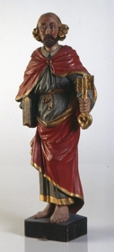 Líkneski af Pétri postula með lykla Himnaríkis, var fyrrum í burstmyndaðri umgerð eða húsi með hurðum fyrir. Úr Hallormsstaðarkirkju, mun frá fyrri hluta 15. aldar.
