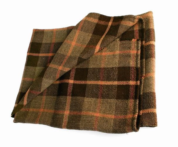 170 cm, og breidd 140 cm. Köflótt og með strengjum. Dökkbrúnt,