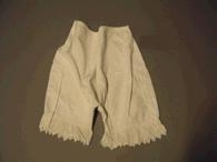 skálmum sem náðu alveg niður að hnjám. Á enda skálmanna er saumuð blúnda