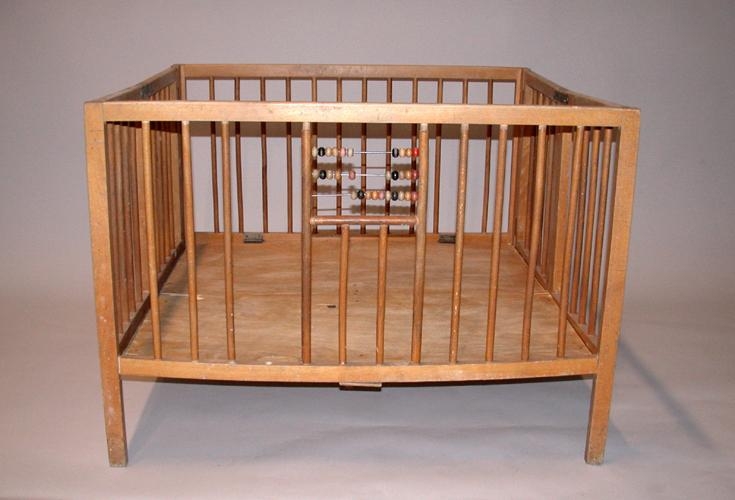 1946. Leikgrindin er ferhyrnd, með rimum úr tré á öllum fjórum hliðum.