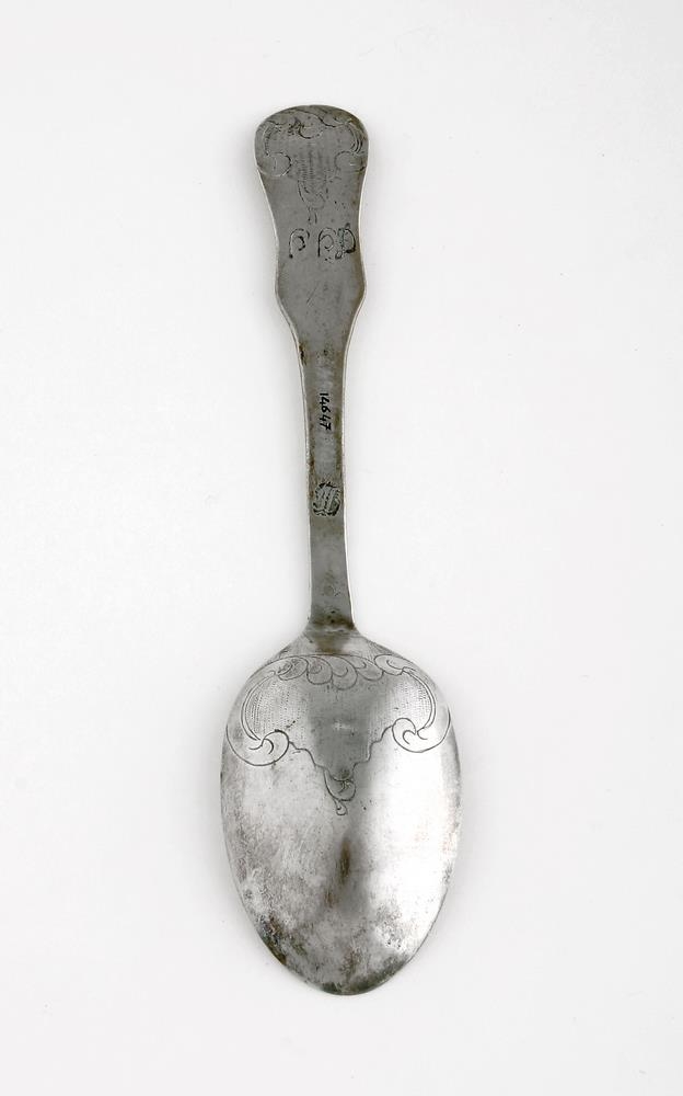 Matskeið úr silfri í rókókóstíl, íslensk frá fyrri hluta 19. aldar.